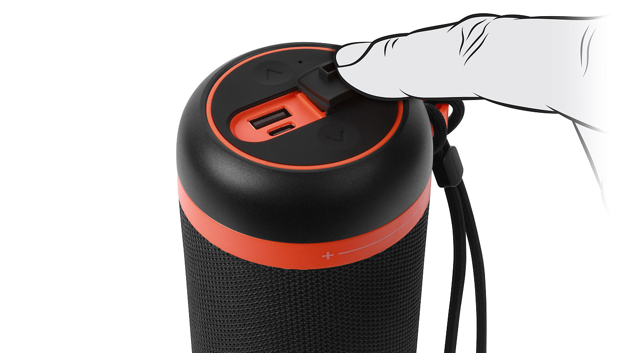 Taasesitus USB-mäluseadmetelt pic Võimaldab kahel eraldi Bluetooth-seadmel töötada stereorežiimis pic Käed-vabad tehnoloogia tugi pic Sisseehitatud mikrofon pic USB-C pesa pic Mitmevärviline taustavalgustus pic Tegevusraadius: 10 m pic Sisseehitatud Bluetooth moodul pic Sisseehitatud 1800 mAh aku pic Kolmas vedelikukaitseklass pic Tööaeg kuni 10 tundi pic
