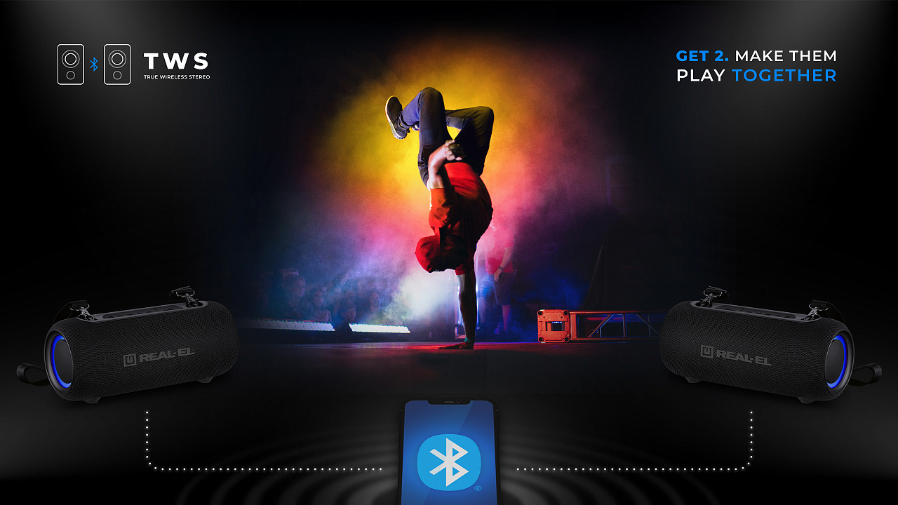 Veelgi võimsama heli saamiseks aktiveerige TWS-režiim, ühendage kaks kõlarit ja looge üks juhtmevaba süsteem ning helivõimsus kahekordistub!