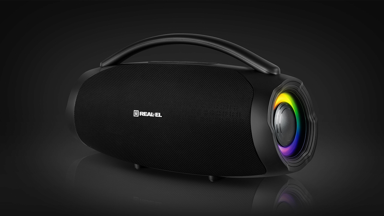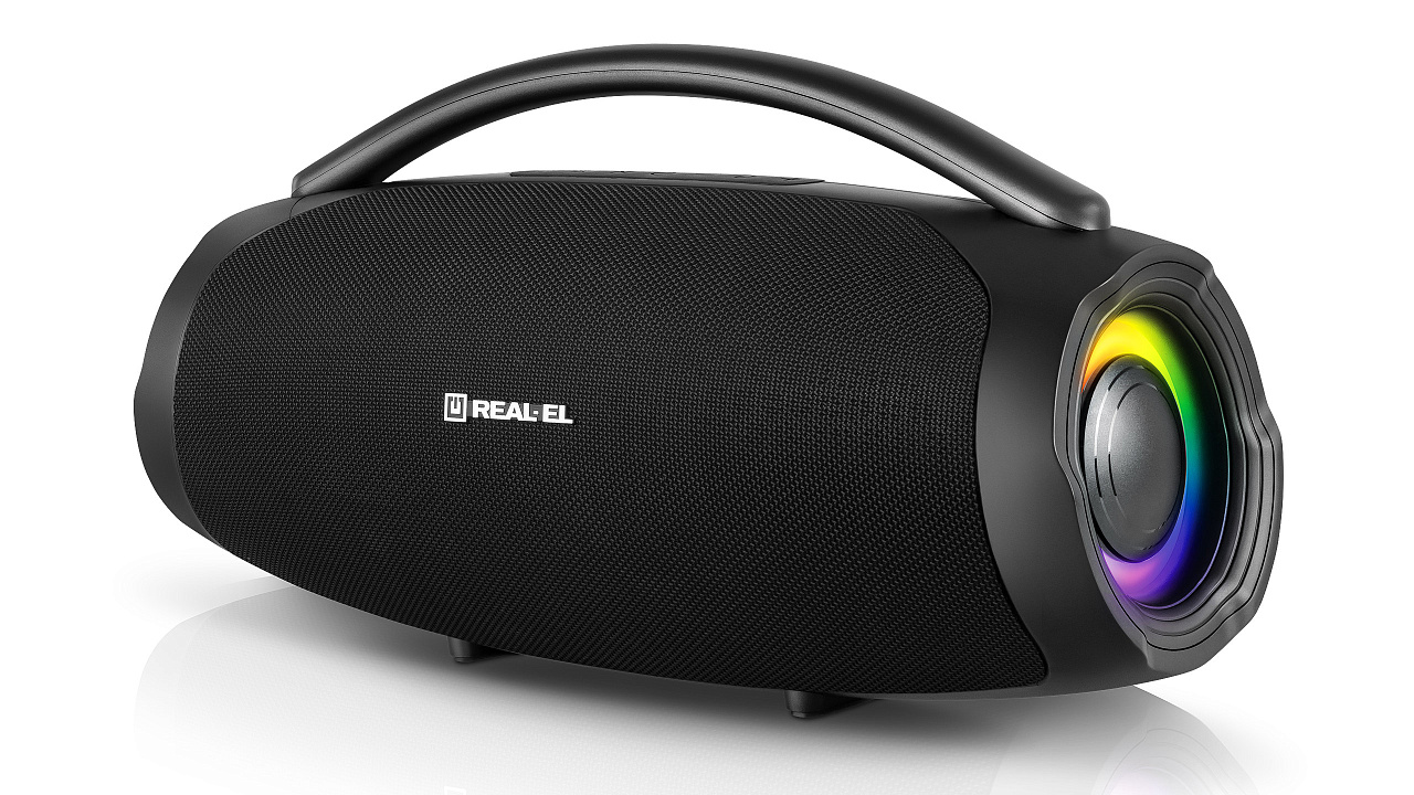 REAL-EL X-755 on stiilne, kompaktne ja võimas boombox RGB valgustuse ja TWS funktsiooniga.