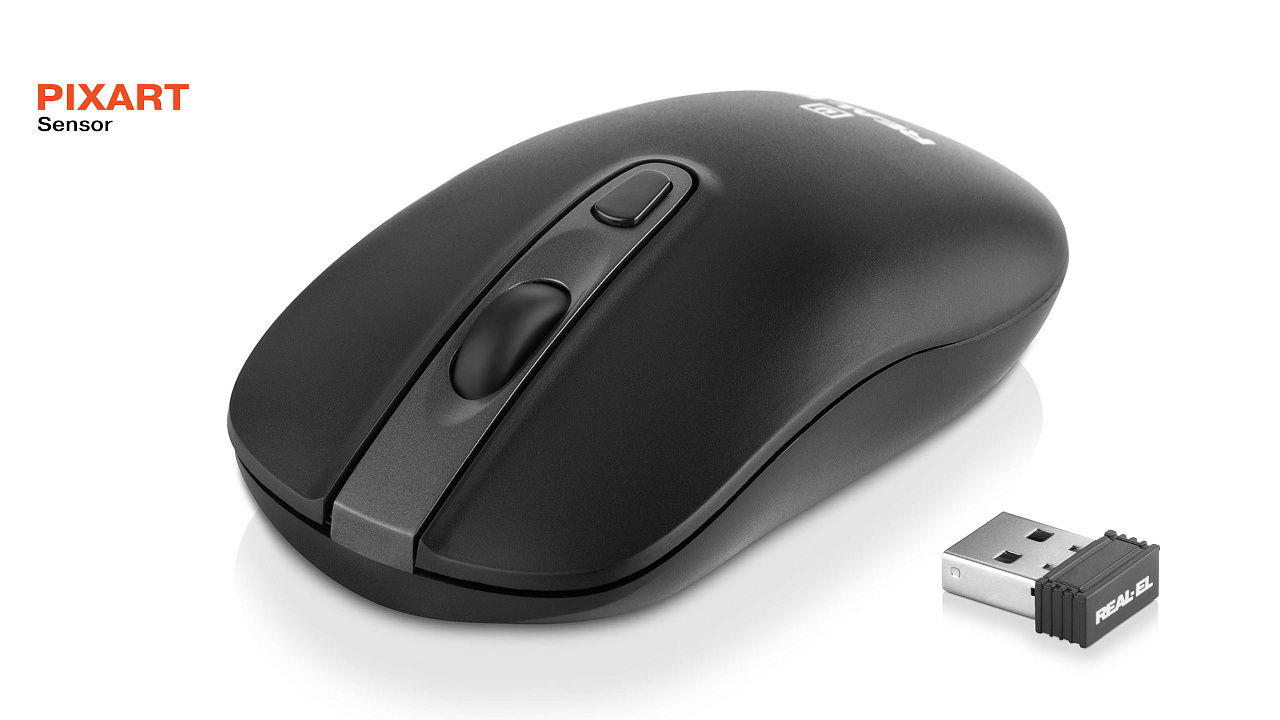 Energiatõhus juhtmevaba tehnoloogia võimaldab REAL-EL RM-350W hiirel praktiliselt kõigil pindadel töötada. Omadused: 3 + 1 nuppu, stiilne ergonoomiline disain, kererull, eraldusvõime - 1600 dpi, USB-liides.