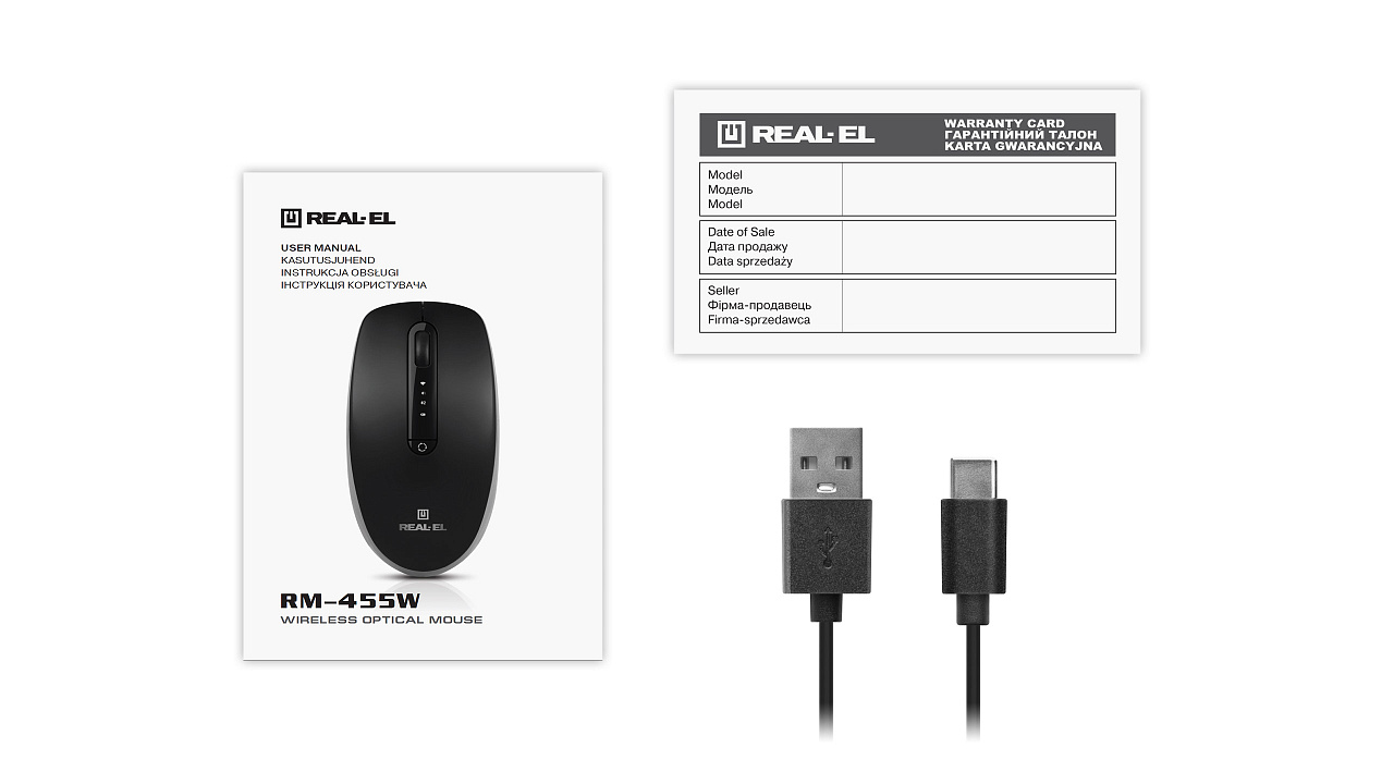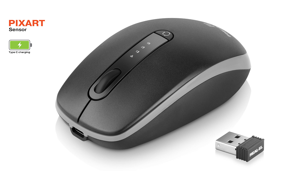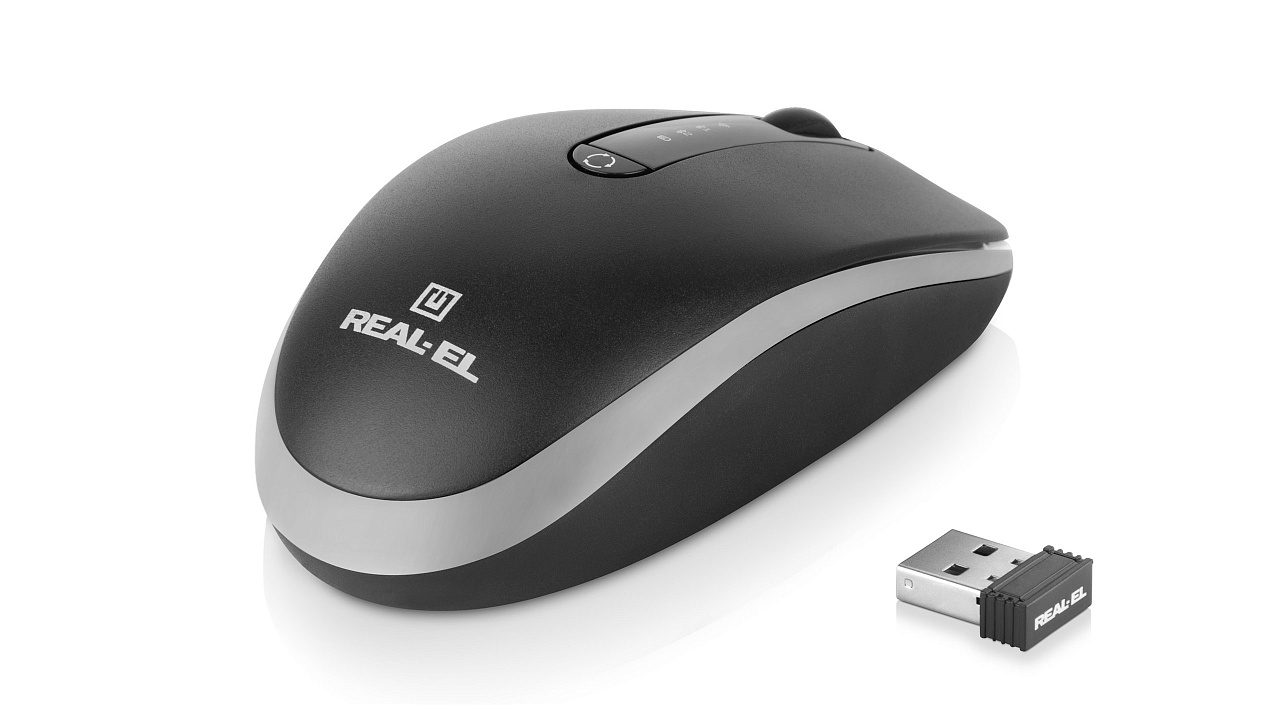 Energiatõhus juhtmevaba tehnoloogia võimaldab REAL-EL RM-455 W hiirel praktiliselt kõigil pindadel töötada. Omadused: 3 + 1 nuppu, stiilne ergonoomiline disain, kererull, eraldusvõime - 2400 dpi.