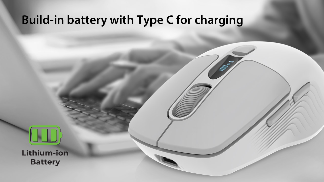 Sisseehitatud 400 mAh liitium-ioonaku tagab pikaajalise autonoomse töö. Laadimine toimub USB Type-C kaudu, mis võimaldab hiirt samal ajal kasutada ja laadida, tagades katkematu tööprotsessi.