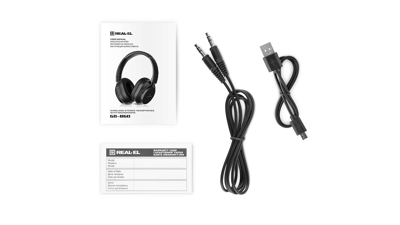 Juhtmevabad kõrvaklapid koos mikrofoniga REAL-EL GD-860 eristuvad kompaktsuse poolest (tänu kokkuklapitavale tugevale konstruktsioonile), mugav istuvus suuruse regulaatoriga ja väike kaal. See mudel on ühilduv erinevate seadmetega Bluetooth 5.0 protokolli abil (toetab ka eelmisi versioone). Sisseehitatud aku võimaldab autonoomset tööaega kuni 20 tundi, ja kui soovite tööd jätkata, sisaldab komplekt USB-toitekaablit ja kaablit juhtmega ühendamiseks.