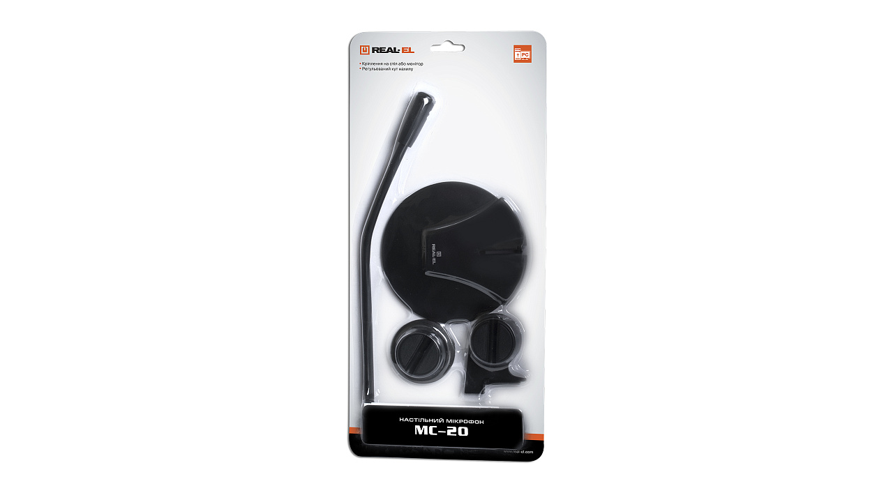 Laualamp mikrofon REAL-EL MC-20 on mõeldud internetis suhtlemiseks, võõrkeelte õppimiseks sõnade ja fraaside salvestamiseks. Painduv jalg, millele on paigaldatud mikrofonikapsel, võimaldab muuta mikrofoni asendit. Massiivne alus tagab mudeli stabiilsuse.