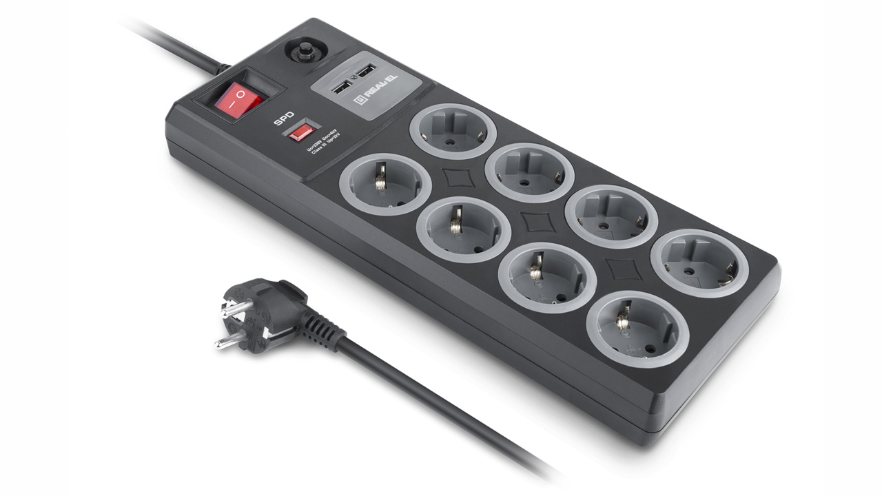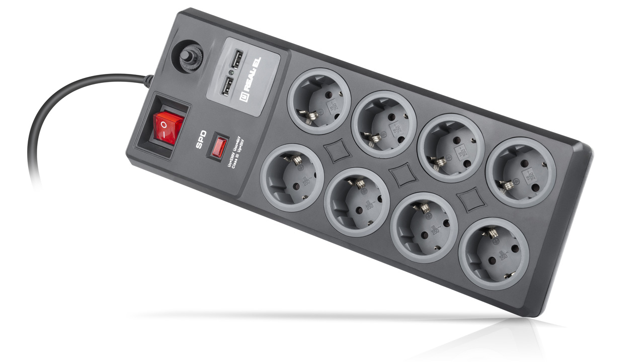 REAL-EL RS-8F USB Charge pikendusjuhe on teie elektroonikaseadmete tõeline kilp, mis sobib ideaalselt kasutamiseks kontorites, suurtes kodudes või korterites. Filtril on sisseehitatud kaitse äikesetõrje vastu. Filtril on taastuv kaitse, mida pole vaja välja vahetada, ja kaabel on valmistatud kõrgekvaliteedilisest puhtast vasest.