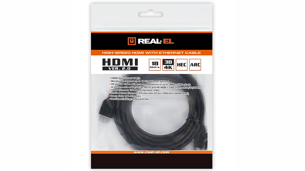 The REAL-EL HDMI ver. 2.0 M-M cable is designed to connect digital sources and receivers equipped with HDMI ports simultaneously.