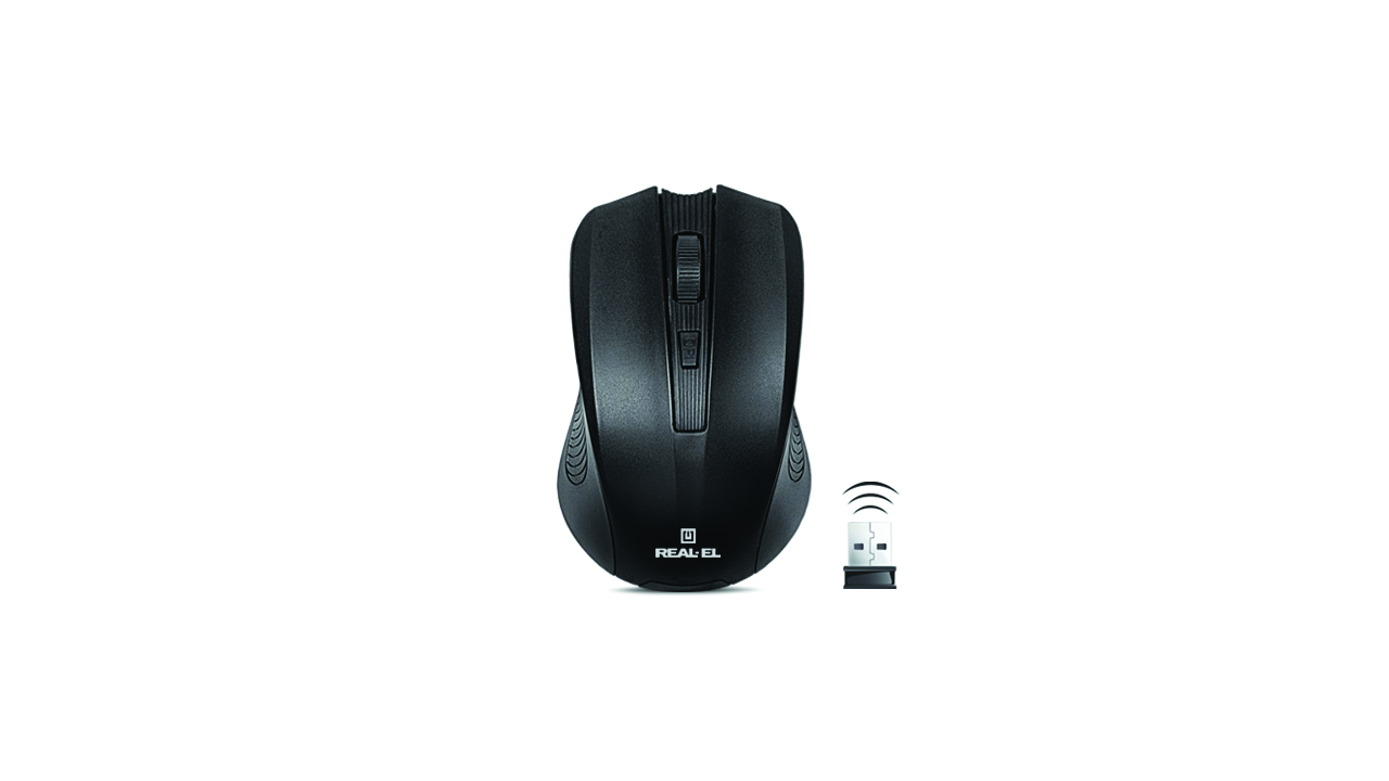 Power efficient optical technology enables REAL-EL RM-305 Wireless optical mouse to operate practically on any surface. It has the following features: 3 + 1 (scroll wheel) buttons, 2.4 GHz USB nano receiver, high-speed response and high operation speed, 600/1000 dpi resolution, USB, convenient for operation with a notebook.