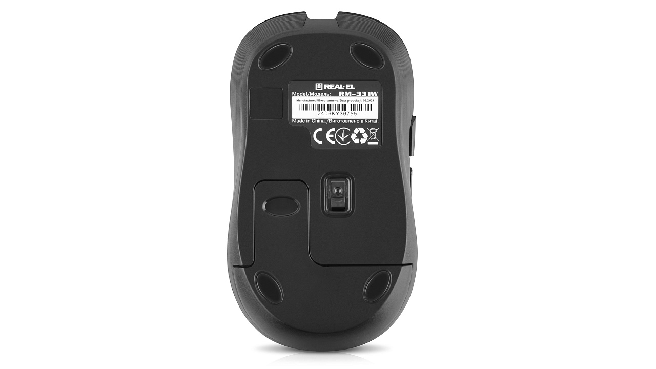 Energy-efficient wireless technology allows the REAL-EL RM-331 W mouse to work on practically any surface. Features: 5 + 1 buttons, stylish ergonomic design, scroll wheel, resolution capability - 800/1200/1600 dpi, USB interface.