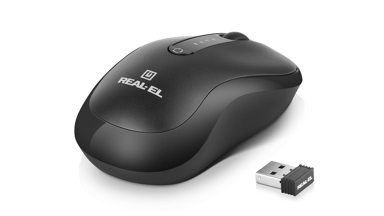 Energy-efficient wireless technology allows the REAL-EL RM-450 W mouse to work on practically any surface. Features: 3 + 1 buttons, stylish ergonomic design, scroll wheel, resolution capability - 2400 dpi.