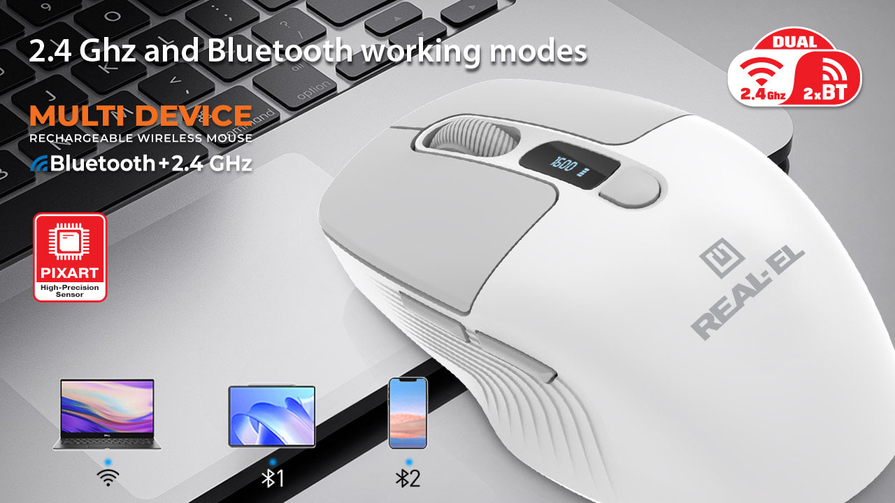 The wireless optical mouse REAL-EL RM-480W combines stylish design, functionality, and convenience, making it the ideal solution for work and entertainment.