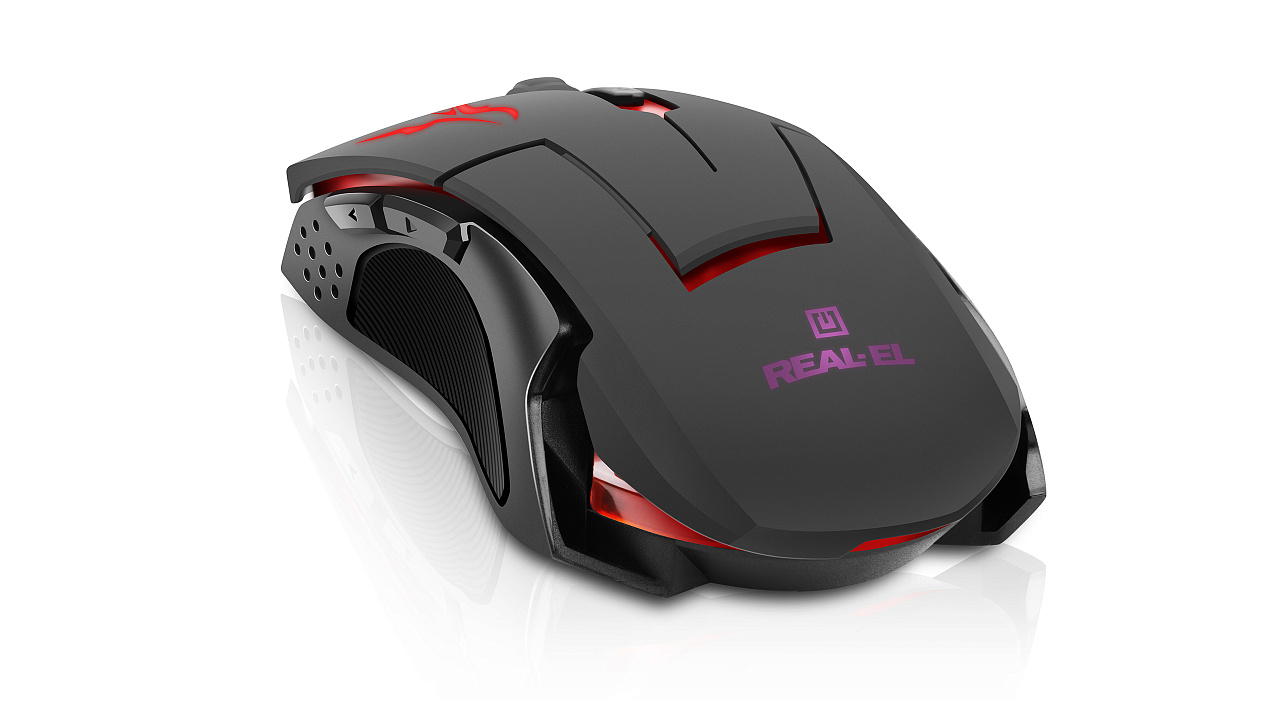 High-precision optical technology allows the gaming computer mouse REAL-EL RM-520 Gaming to work practically on any surface. Features: high operating speed, 5 + 1 buttons, scroll wheel, 2 navigation buttons "forward" and "back", DPI resolution switch, Soft Touch housing coating, built-in backlight with the ability to turn it off.