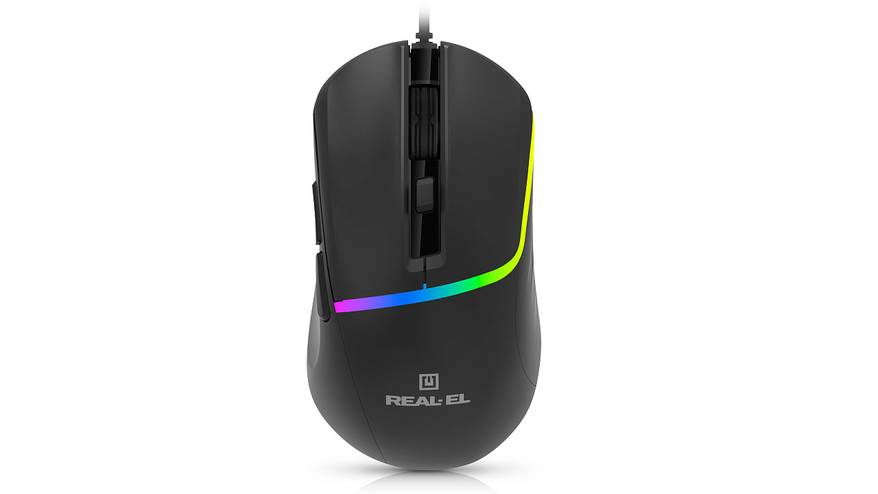 High-precision optical technology allows the computer mouse REAL-EL RM-530 to work practically on any surface. Features: high working speed, 5 + 1 buttons, scroll wheel, 2 navigation buttons "forward" and "backward", DPI resolution switch, built-in lighting with the ability to turn it off.