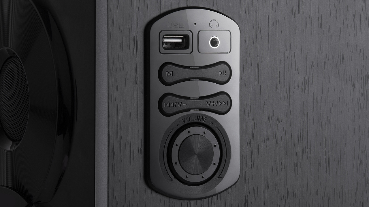 REAL-EL S-450 two-way acoustic system features a modern, elegant design with rounded side edges that give it a special charm. Because of the powerful amplifier built into the wooden case, the low and high-frequency speakers of REAL-EL S-450 reproduce the full frequency spectrum of the most demanding compositions in detail and realistically. On the side panel of the speaker, there is a convenient music playback control unit and a USB flash port. The acoustic system has a built-in Bluetooth module and an audio file player. For added convenience, the set includes a handy remote control and a headphone jack.