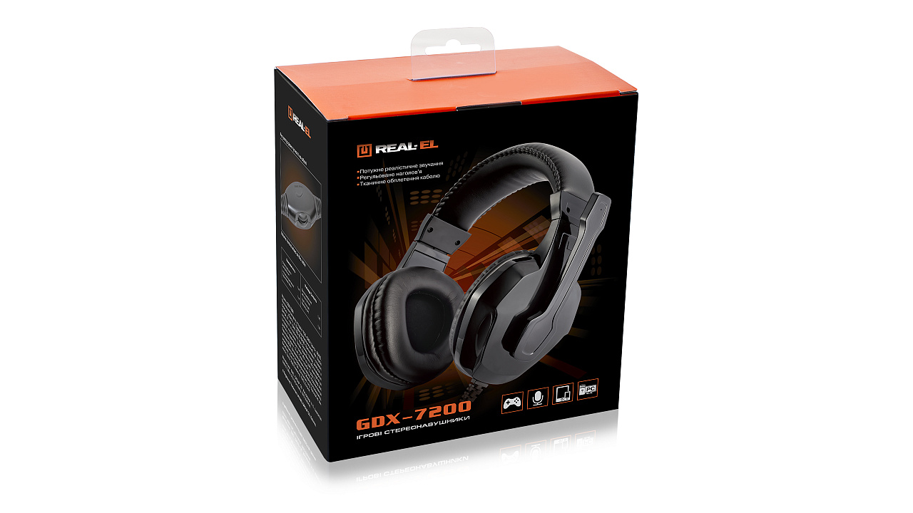 Headphones with microphone REAL-EL GDX-7200 provide playback of powerful realistic sound, creating a sense of full presence. Compatible with media players and PCs.
