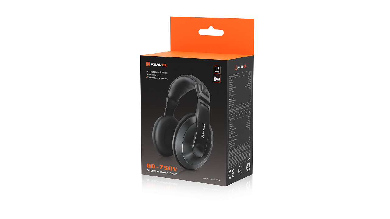 Headset with microphone REAL-EL GD-750V is designed to work with PC sound cards and other systems compatible with them. They can also be used in internet telephony, during video conferences, in multimedia applications, in interactive games, for speech recognition, and foreign language learning.