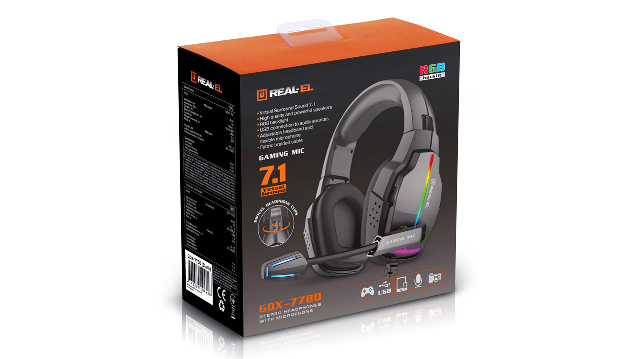 Gaming headphones with microphone REAL-EL GDX-7780 provide playback of realistic and immersive 7.1 sound, allowing you to experience the full power of special effects and the full presence effect in the game.