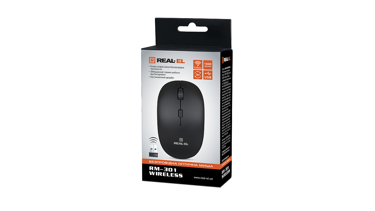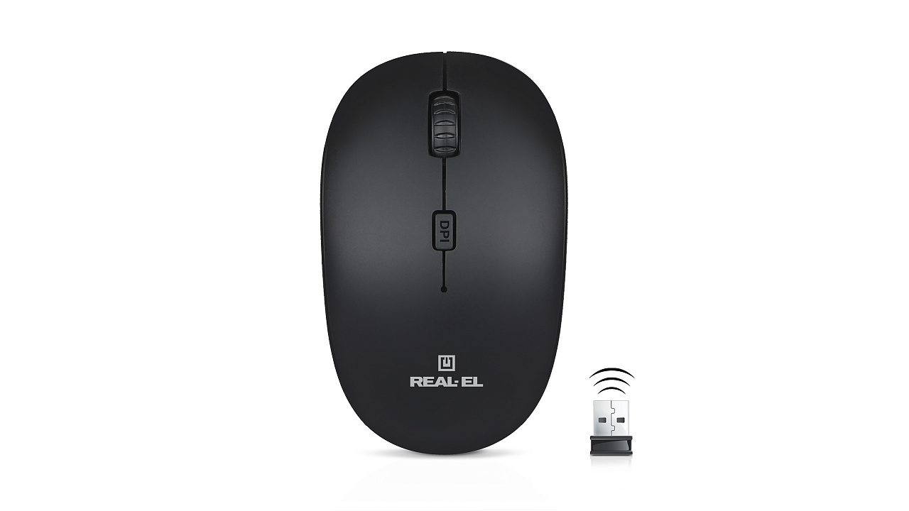 Energiatõhus juhtmevaba tehnoloogia võimaldab REAL-EL RM-301 Wireless hiirel töötada peaaegu igal pinnal. Omadused: 3 + 1 nuppu, stiilne ergonoomiline disain, kereratas, resolutsiooni vahetamise nupp, USB-liides, pikenenud patarei kasutusiga (kuni 1 aasta).