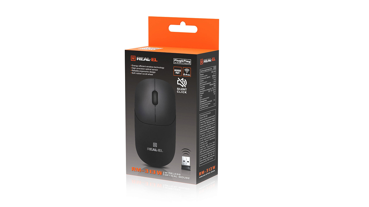Energiatõhus juhtmevaba tehnoloogia võimaldab REAL-EL RM-313 W hiirel praktiliselt kõigil pindadel töötada. Omadused: 2 + 1 nuppu, stiilne ergonoomiline disain, kererull, eraldusvõime - 1000 dpi, USB-liides.